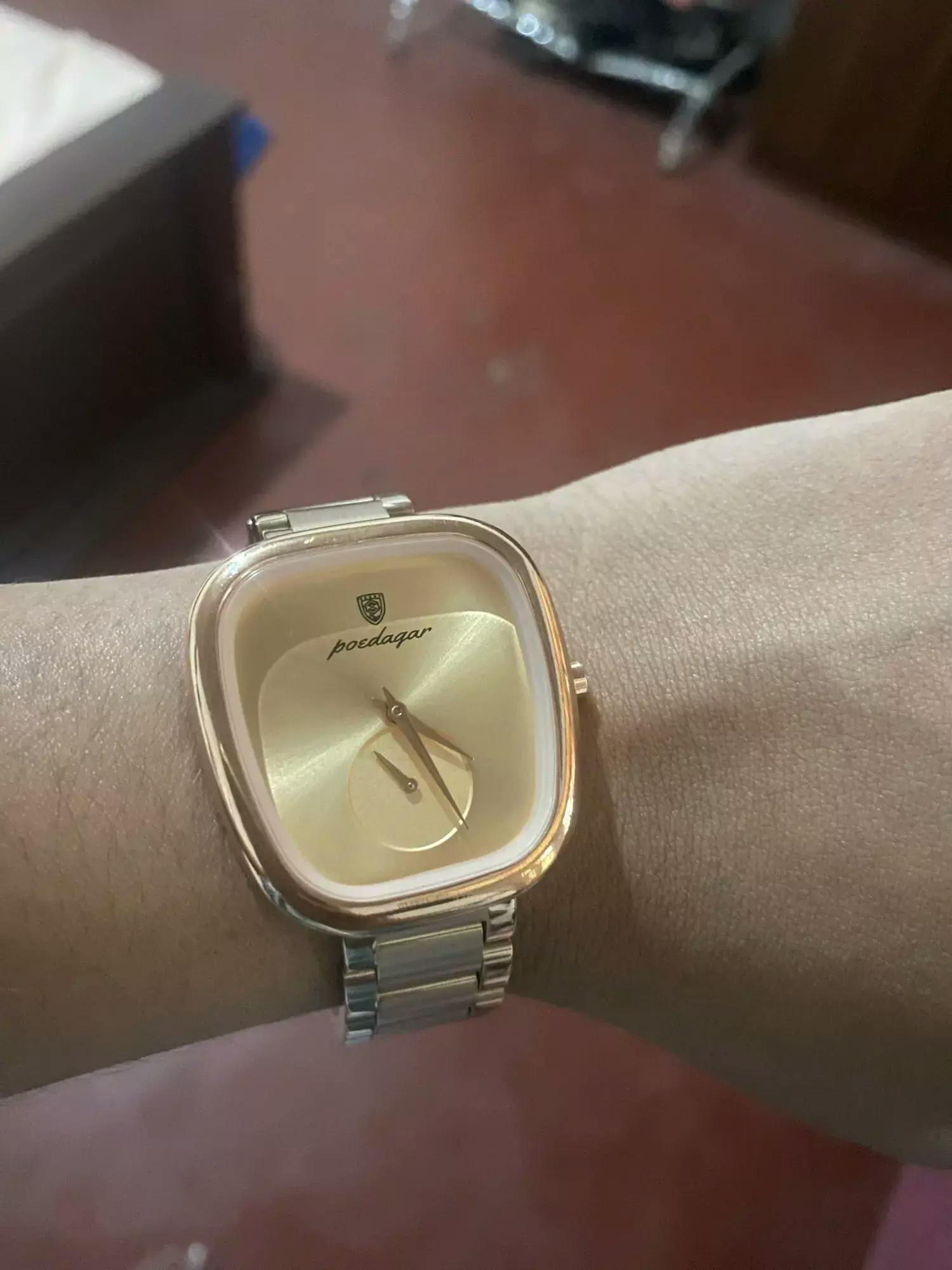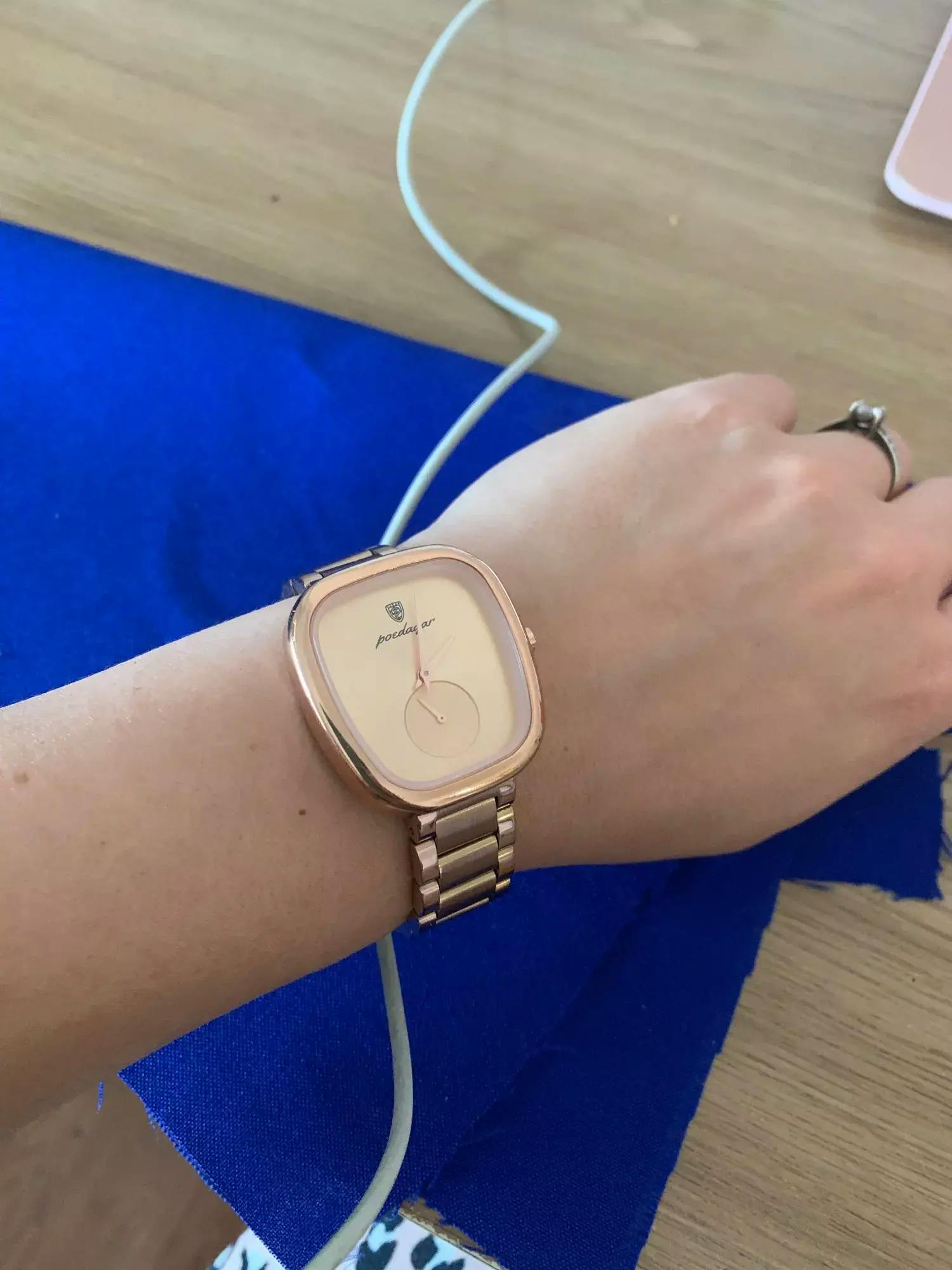 Nice watch, reliable seller. The unique color combination is truly appealing and ensures that it stands out. It's simple, elegant, and complements my style perfectly. The stylish design, coupled with its reliability, has made it a favorite in my collection. It suits her style flawlessly. The slim profile makes it a versatile accessory, fitting comfortably under a shirt cuff.